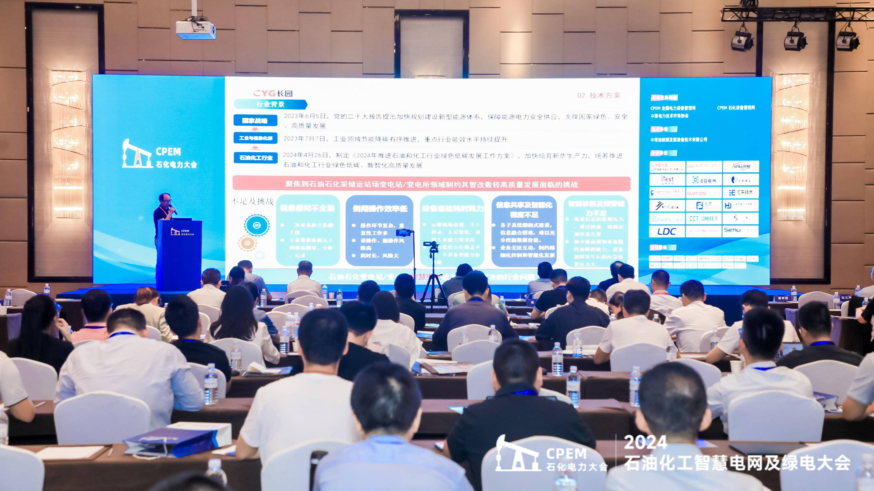 本届⼤会邀请了来⾃⽯油⽯化、 电⽹、⼯程建设、装备制造等相关单位领导与技术专家出席,对新型电⼒系统相关技术在⽯油化⼯领域⽅⾯的政策标准、新问题、新产品及典型案例进⾏技术交流与经验分享。旨在推动新型电⼒系统领域技术应⽤,提⾼⽯油化⼯企业电⼒ 系统智能化⽔平,提升能源利⽤效率和安全⽣产⽔平,推动⽯油化⼯⾏业绿⾊化、低碳化发展。
